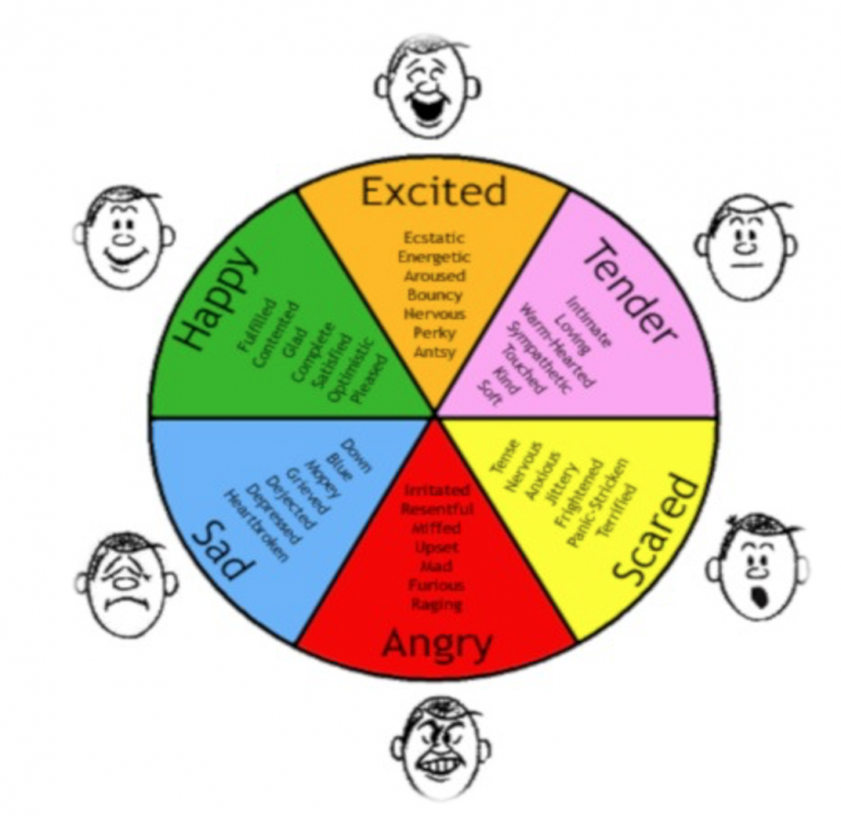 1. Self-awareness: this domain is the first building block of EI for project managers and comprises of 5 competencies of emotional self-awareness, accurate self-assessment, and self-confidence. Understanding what we feel is the first step of self-awareness. Basically, we have one or a combination of six basic feelings at a moment: Sad, Angry, Scared, Happy, Excited, and Tender (SASHET families of emotions in figure 2.3). Accurate self-assessment includes understanding strengths and limits of what we feel before exploring them our own or with others. And self-confidence is the ability to be self-assured in whatever situation we always find ourselves (Mersino, 2007).